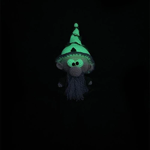 Complete crochet project kit with everything needle to craft your own glow-in-the-dark amigurumi gnome.