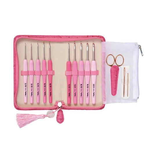 The comfortable elastomer cushion grip lets you work for hours with little fatigue. Ideally shaped, smooth hook tips enable effortless crocheting.