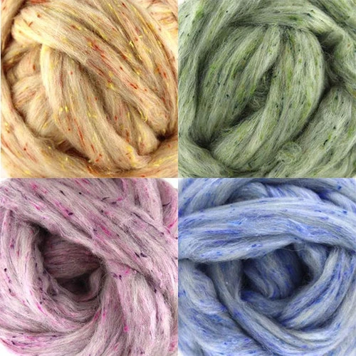 Vibrant blends of wool and viscose produce amazing tweed effects. Ideal for either spinning or felting applications. As a bonus, there are endless dyeing possibilities since only the wool will accept a dye, not the viscose.