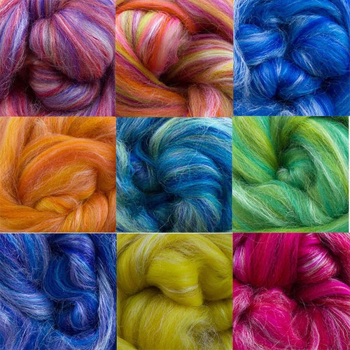 Dyed Merino top blended with bleached Tussah silk generate some truly colorful combinations. Each of the color options has been named for a similar colored mineral or gemstone.